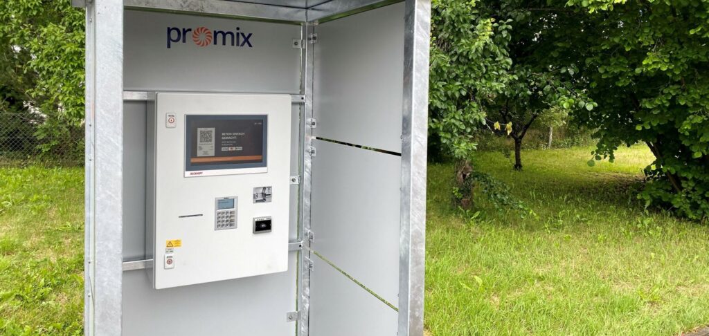 Mit einer promix Betontankstelle können Ihre Kunden Frischbeton in Kleinmengen ab 0,15 m³ selbst zapfen – vollautomatisch per QR-Code-Steuerung. Ob Einmalticket oder Kundenkarte: die Abwicklung läuft vollständig über das integrierte SB-Terminal.