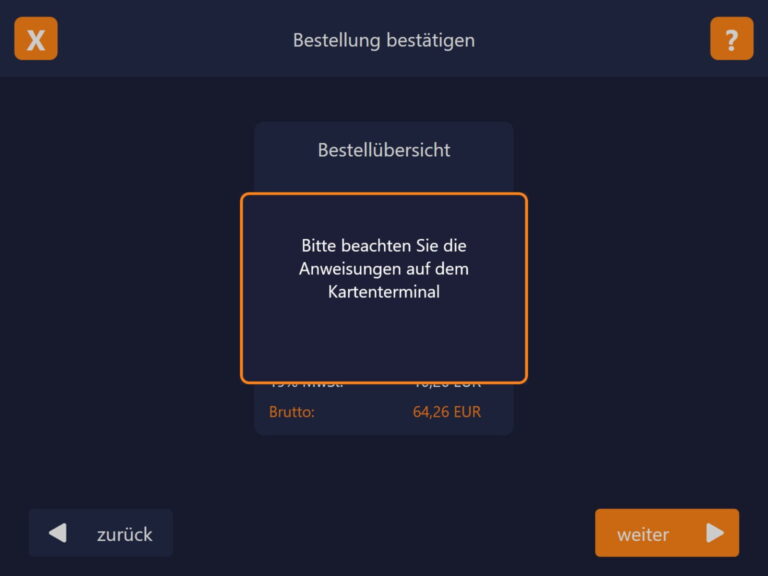 Tippen Sie auf den Bildschirm des SB-Bezahlterminals, um den Bestellvorgang zu starten.